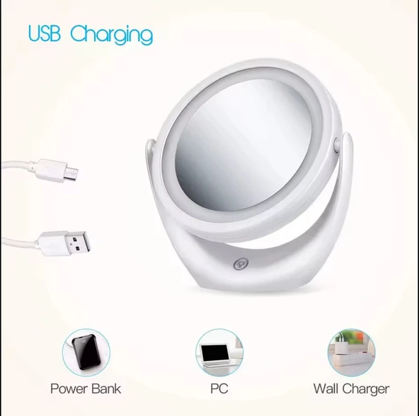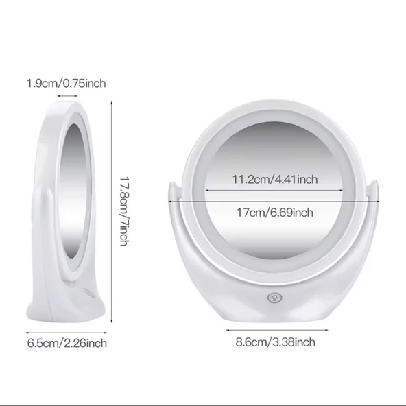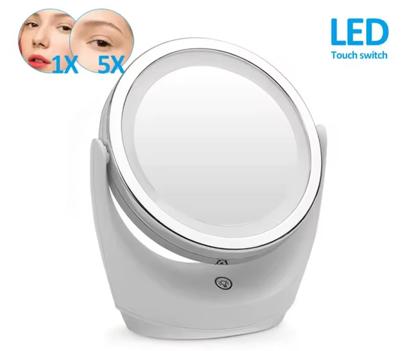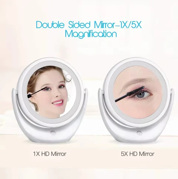 IŞIKLI ÇİFT TARAFLI 16 LED 1X-5X BÜYÜTEÇLİ PİLLİ DOKUNMATİK MAKYAJ AYNASI MASAÜSTÜ AYNA