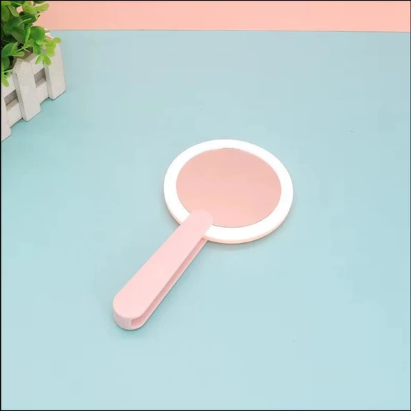KATLANABİLİR PEMBE RENK EL TİPİ IŞIKLI LED TAŞINABİLİR MAKYAJ AYNASI