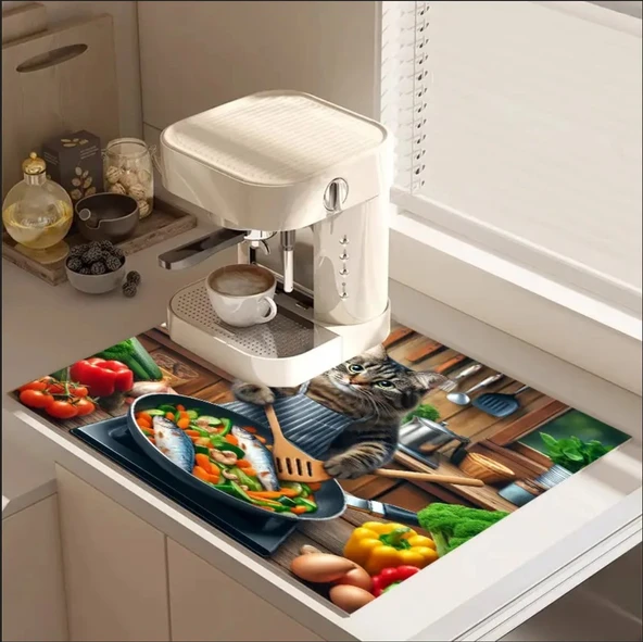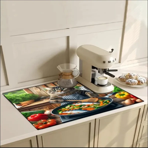 55 CM x 45 CM KEDİ ŞEF TASARIMI TEZGAH ÜSTÜ BULAŞIK KURUTMA MATI BULAŞIKLIK KURUTMA ÖRTÜSÜ