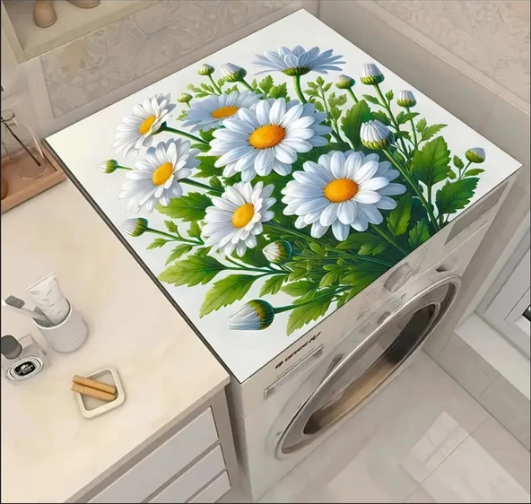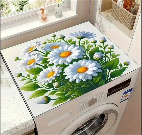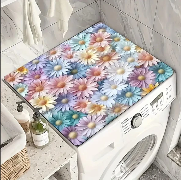 55 CM x 45 CM RENKLİ PAPATYALAR TASARIMI TEZGAH ÜSTÜ BULAŞIK KURUTMA MATI BULAŞIKLIK KURUTMA ÖRTÜSÜ