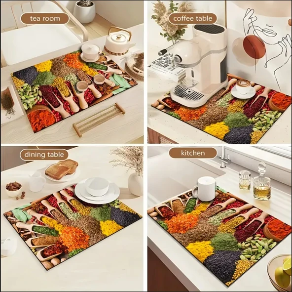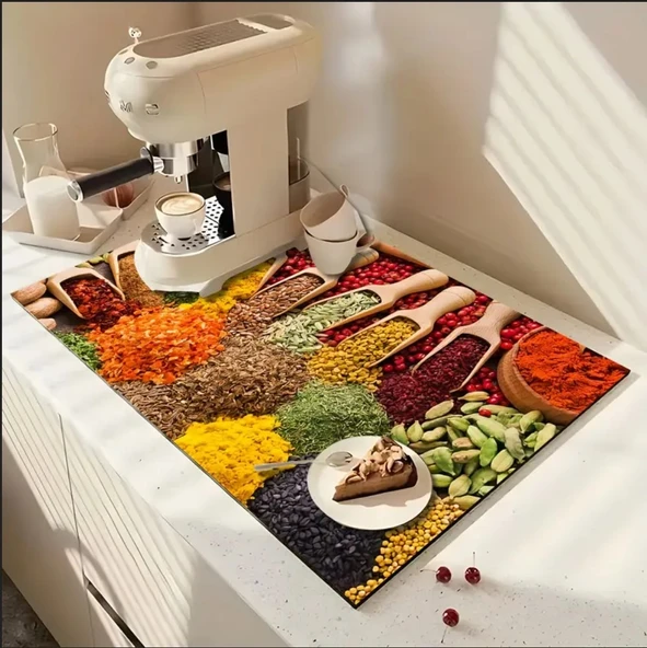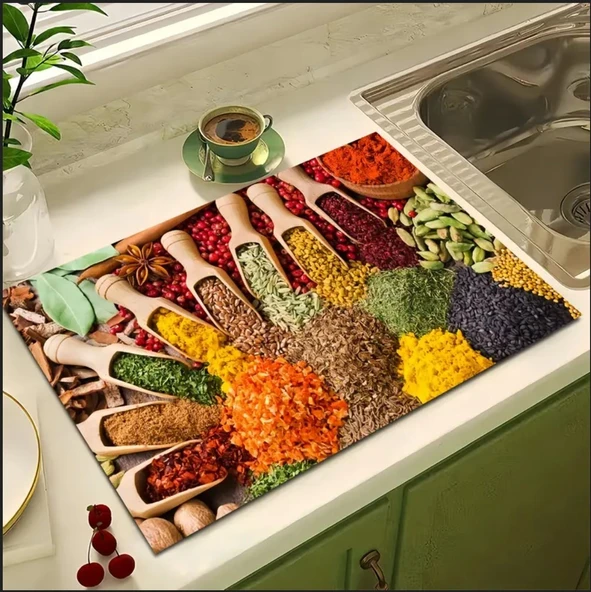 55 CM x 45 CM MUTFAK BAHARAT TASARIMI TEZGAH ÜSTÜ BULAŞIK KURUTMA MATI BULAŞIKLIK KURUTMA ÖRTÜSÜ