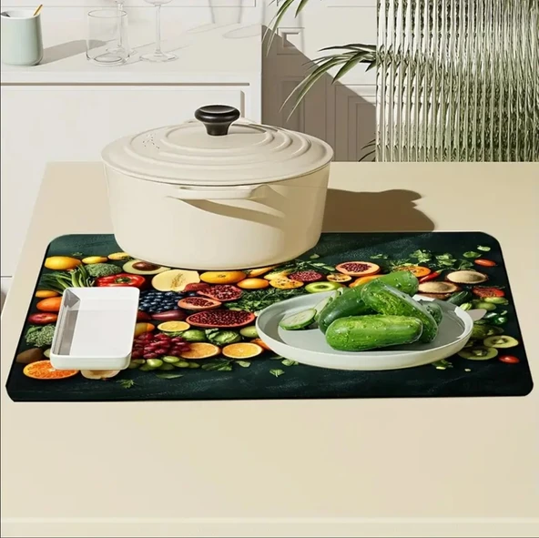 55 CM x 45 CM MEYVELER VE SEBZELER TASARIMI TEZGAH ÜSTÜ BULAŞIK KURUTMA MATI BULAŞIKLIK KURUTMA ÖRTÜSÜ