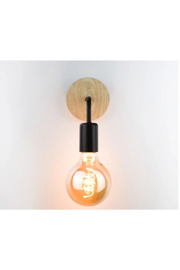 SimaAvize Sima Avize Ahşap Siyah Tekli Duvar Lambası Aplik