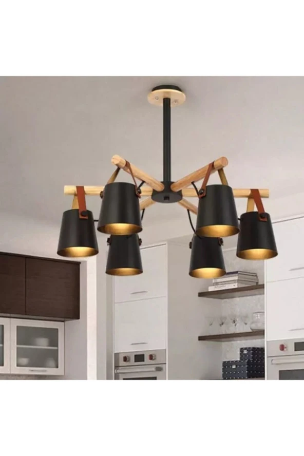 SimaAvize Modern Ahşap Led Avize-5 'li