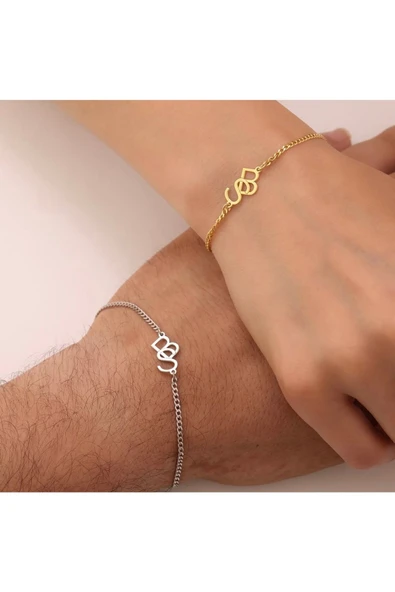 925 Gümüş | Geçmeli 2 Harf Çift Bilekliği