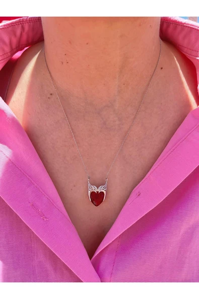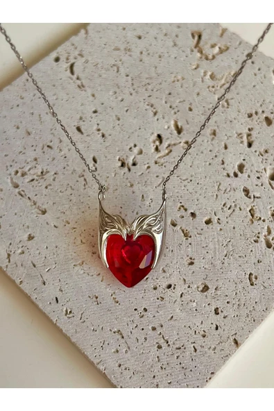 925 Gümüş | Kırmızı Kalpli İstediğini Yazdır Kolye