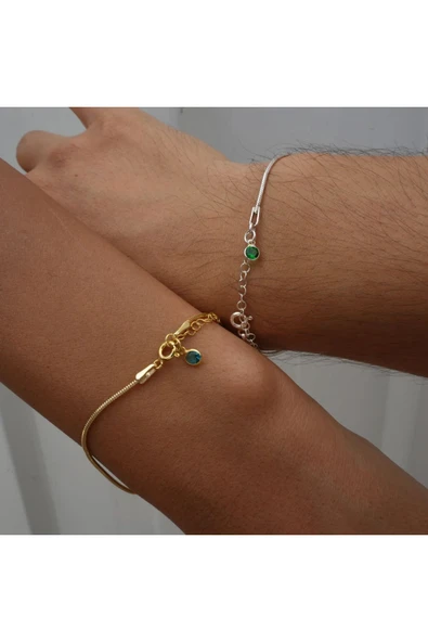 925 Gümüş | Doğum Taşlı Çift Bilekliği