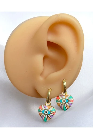 925 Ayar Gümüş Gözlü Kalp Küpe