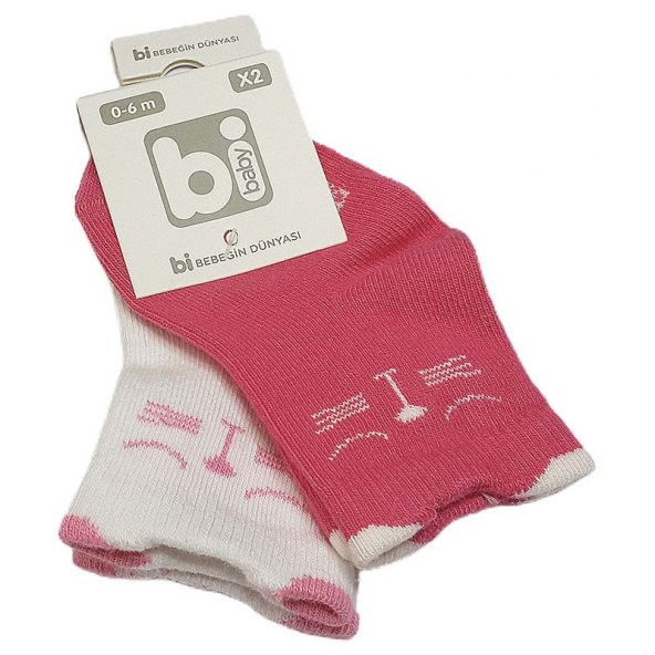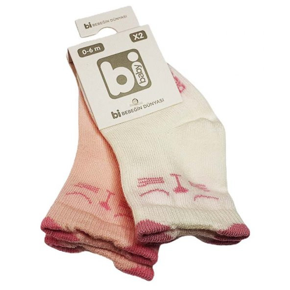 Bibaby Bebek Çorabı 2 li 0-6 Ay - Ekru - Pembe