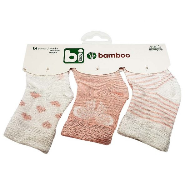 Bibaby Bambu Bebek Çorabı 3 lü 0-6 Ay - Beyaz Kuğu - Pembe
