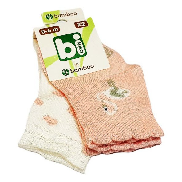 Bibaby Bambu Bebek Çorabı 2 li 0-6 Ay - Beyaz Kuğu - Pembe