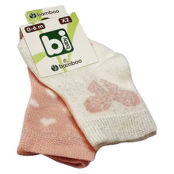 Bibaby Bambu Bebek Çorabı 2 li 0-6 Ay - Pembe Kelebek - Ekru