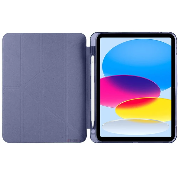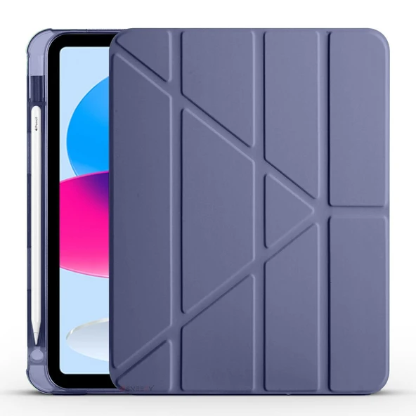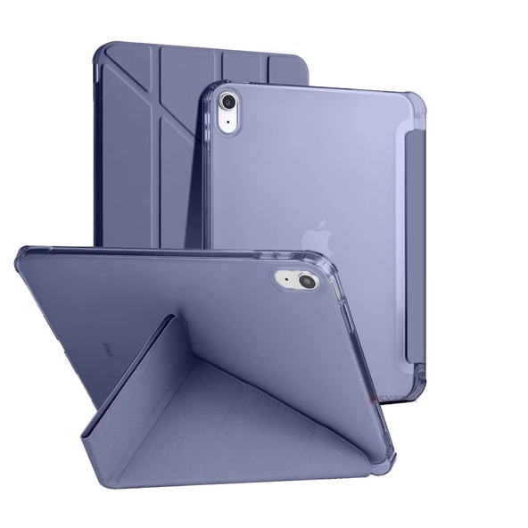 İpad 11.Nesil 11 inç 2025 A16 Uyumlu Üçgen Katlanabilir Kalemlikli Yatay Dikey Standlı Akıllı Kılıf Lavanta