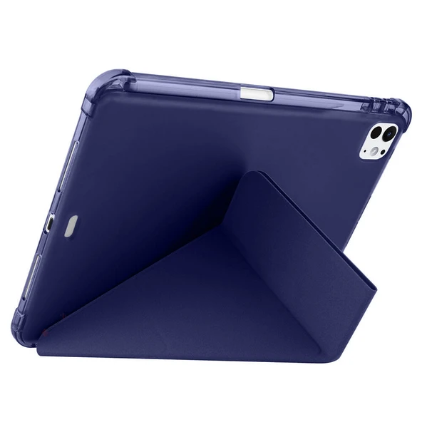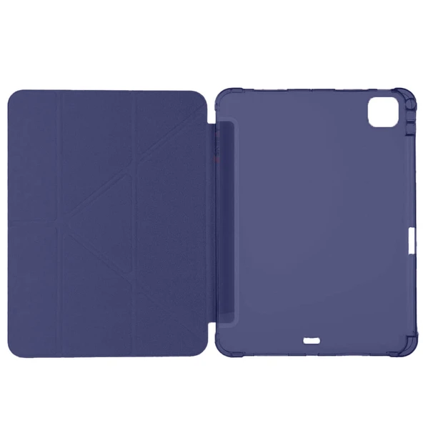 iPad Pro 11 inç M4 2024 Uyumlu Kılıf Üçgen Katlanabilir Kalem Şarj Bölmeli Kılıf A2836 A2837 A3006 Lacivert