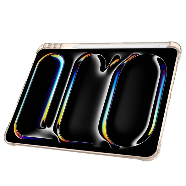 iPad Pro 11 inç M4 2024 Uyumlu Kılıf Üçgen Katlanabilir Kalem Şarj Bölmeli Kılıf A2836 A2837 A3006 Gold