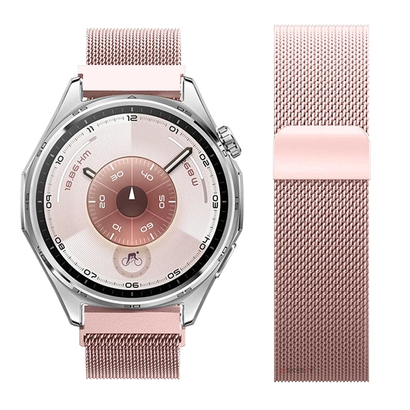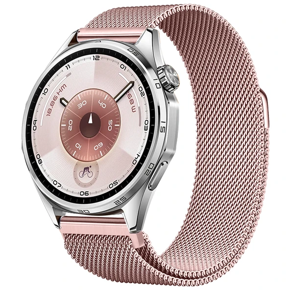 Huawei Watch GT6 46mm Uyumlu Manyetik Milanese Loop Metal Kordon Rose Gold