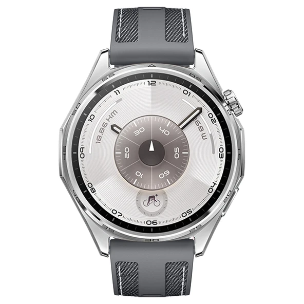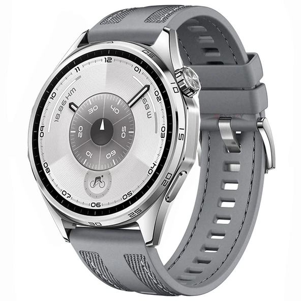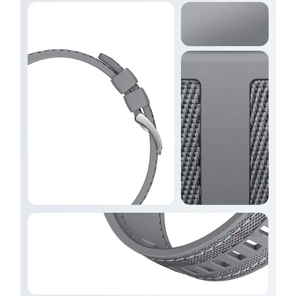 Sneezy Huawei Watch GT6 46mm ile Uyumlu Metal Tokalı Dikiş Detaylı Şık Dokuma Silikon Kordon Gri