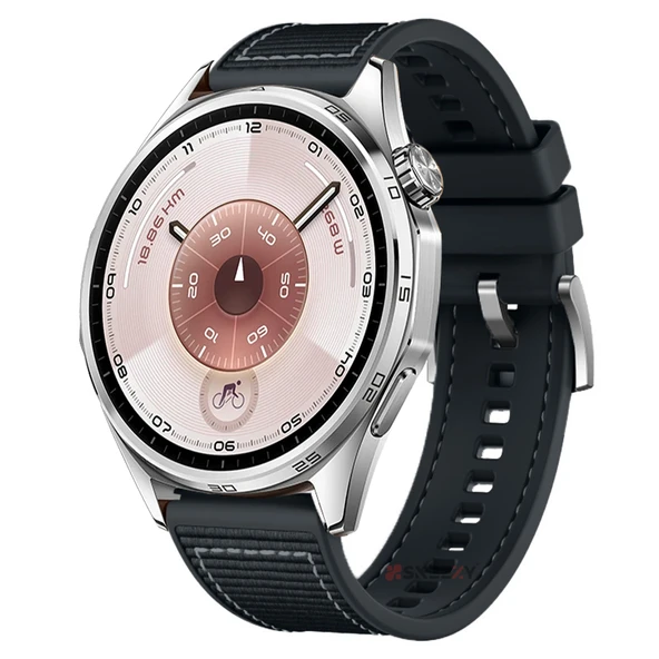Sneezy Huawei Watch GT6 46mm İle Uyumlu Metal Tokalı Dikiş Desenli Dokuma Silikon Kordon Siyah