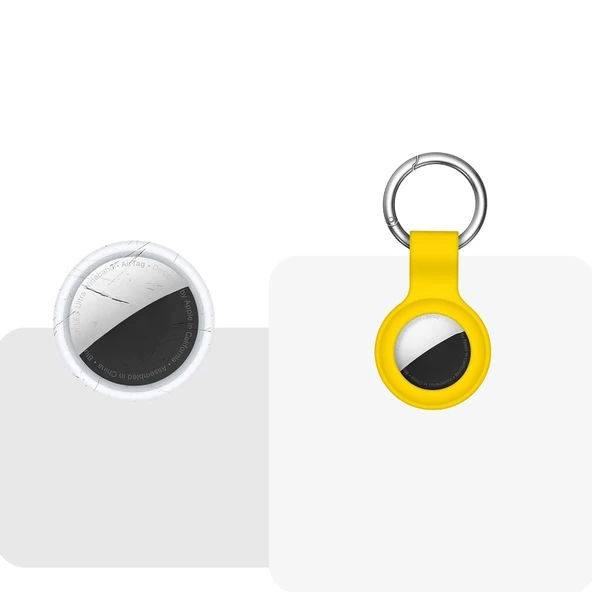 Apple AirTag Uyumlu Silikon Koruyucu Anahtarlık Arkası Kapalı Düşmez Yıkanabilir Sarı