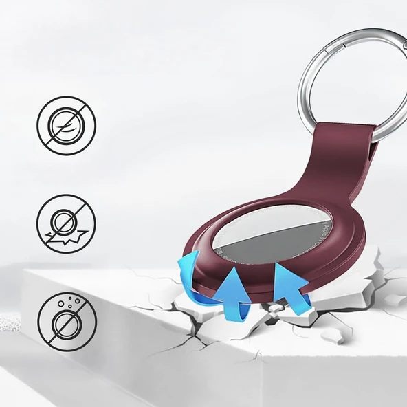Apple AirTag Uyumlu Silikon Koruyucu Anahtarlık Arkası Kapalı Düşmez Yıkanabilir Mürdüm