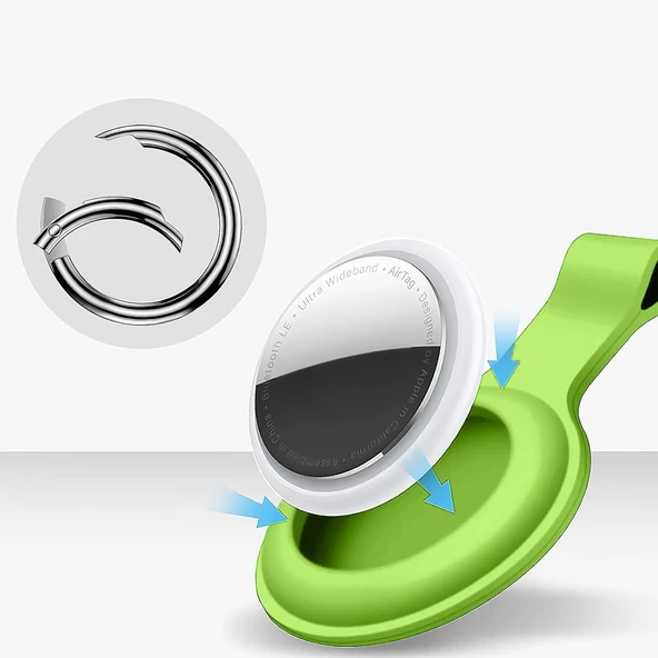 Apple AirTag Uyumlu Silikon Koruyucu Anahtarlık Arkası Kapalı Düşmez Yıkanabilir Yeşil