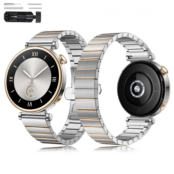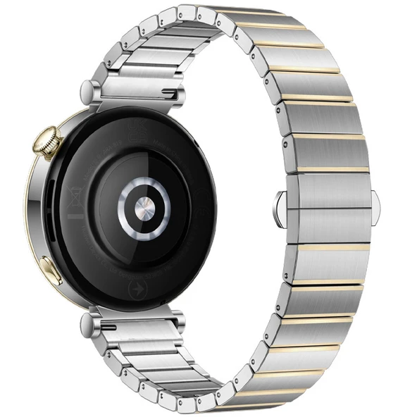 Huawei Watch GT5 41mm İle Uyumlu Renk Detaylı 18mm Paslanmaz Çelik Metal Kordon Kayış Gold