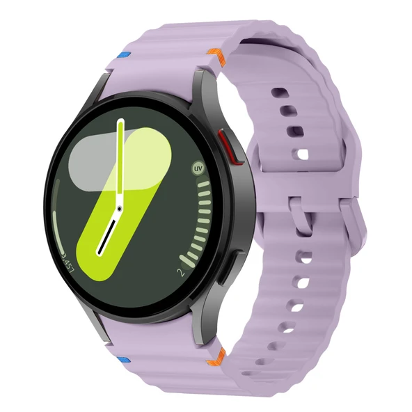 Samsung Galaxy Watch 7 40mm-44mm İle Uyumlu Metal Tokalı Dalgalı Spor Silikon Kordon Lila
