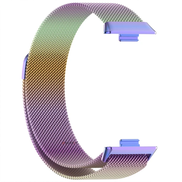 Huawei Watch Fit 3 Uyumlu Paslanmaz Hasır Örgü Metal Milano Kordon Strap Rainbow