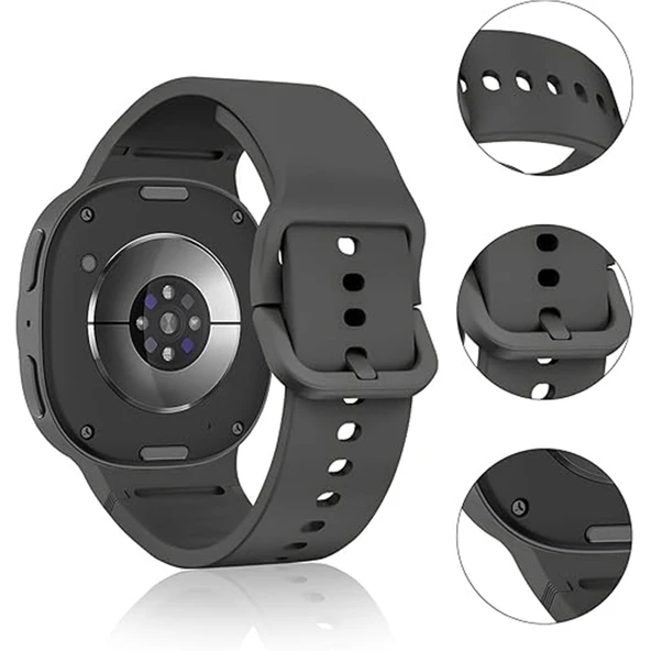 Samsung Galaxy Watch 8 44mm 40mm İle Uyumlu Metal Tokalı PureLux Soft Silikon Kordon Füme