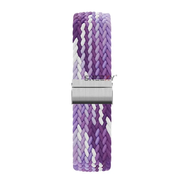 Sneezy Huawei Watch GT5 41mm İle Uyumlu Metal Klips Solo Fiberlink Kumaş Örgü Kordon Lila Beyaz