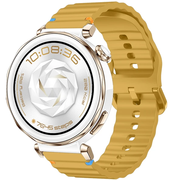 Huawei Watch GT5 Pro 42mm İle Uyumlu Dalga Desenli Tokalı Yumusaş Soft Silikon Kordon Sarı