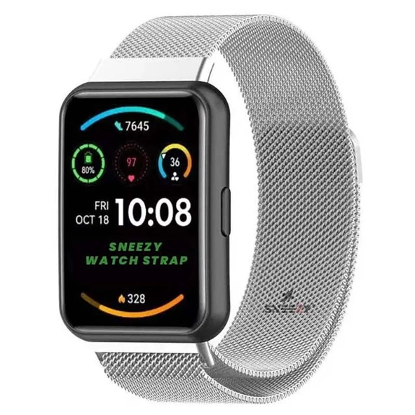 Huawei Watch Fit 2 Metal Hasır Kordon Woven Wire Metal Tasarım Kordon Gümüş