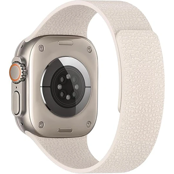 Apple Watch 2-3-4-5-6-7-8-10 & SE Uyumlu Manyetik Desenli Spor Silikon Kordon (38/40/41 & 42 mm) Starlight