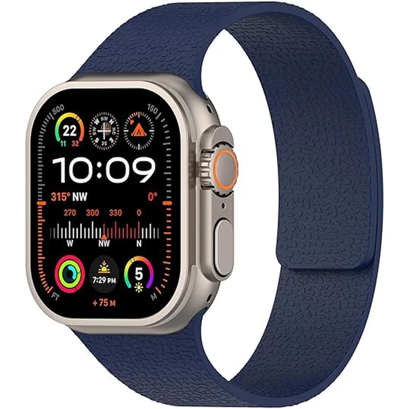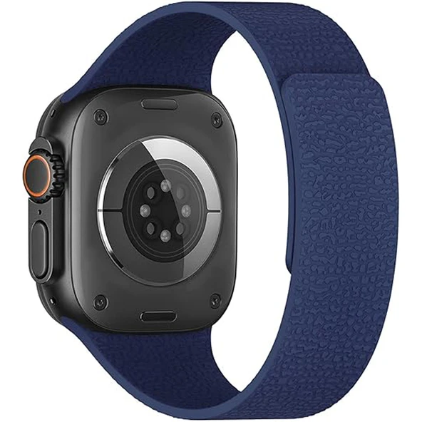 Apple Watch 2-3-4-5-6-7-8-10 & SE Uyumlu Manyetik Desenli Spor Silikon Kordon (38/40/41 & 42 mm) Lacivert