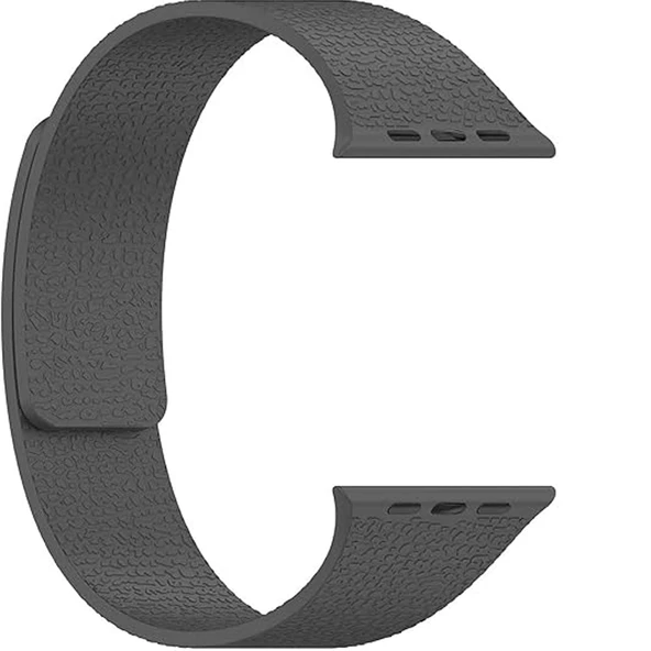 Apple Watch 2-3-4-5-6-7-8-10 & SE Uyumlu Manyetik Desenli Spor Silikon Kordon (38/40/41 & 42 mm) Füme
