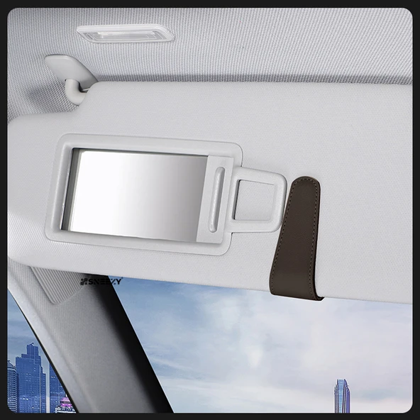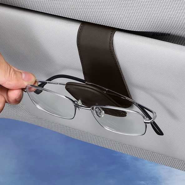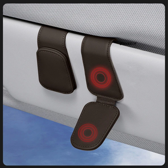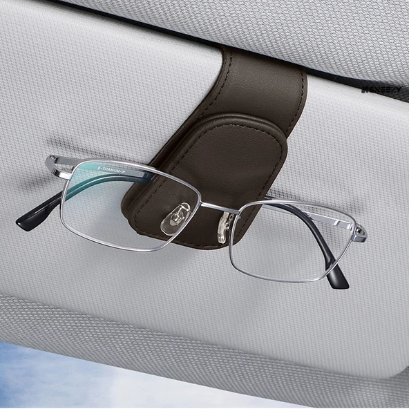 Araç İçi Gözlük Tutucu Deri Manyetik Kart ve Gözlük Tutucu Klips Oto Gözlük Tutucu Kahverengi