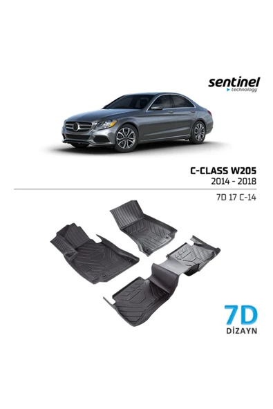 MERCEDES C CLASS W205 2014-2018 ARACA ÖZEL 7D HAVUZLU PASPAS TAKIM 5CM DERİN KOKUSUZ YANLARI KAPLAR