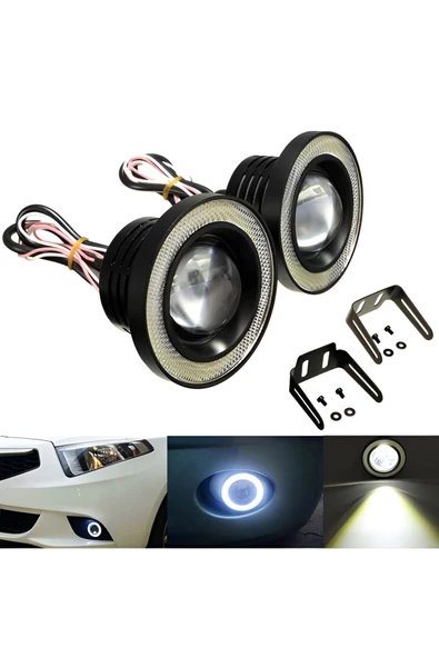 Mercekli Angel Led Sis Farı Halkalı Gündüz Sis Farı 89 mm Beyaz Su Geçirmez Metal Gövde 2 Adet