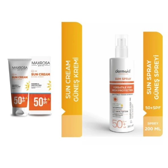 Dermokil Sun Spray Güneş Koruyucu Spf50 + MAXROSA PARİS 50+SPF Yüksek Koruyucu Güneş Kremi 60 ml
