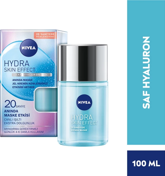 NIVEA Hydra Skin Effect 20 Saniyede Anında Yüz Maskesi 100ml, Saf Hyaluron, 72 Saat Nemlendirme