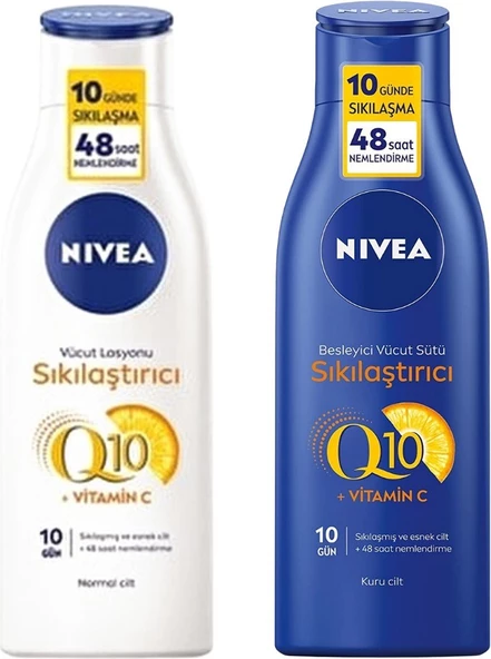 Nivea Sıkılaştırıcı Vücut Losyonu + Vücut Sütü Q10 Vitamin C 250 ml 48 Saat Nemlendirme