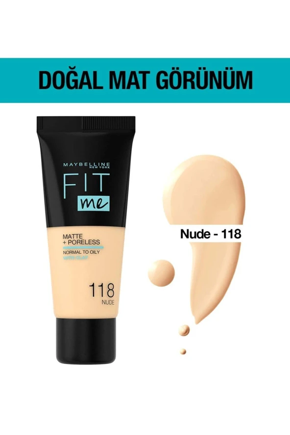 Maybelline New York Fondöten Fit Me Matte Poreless Foundation 118 Nude