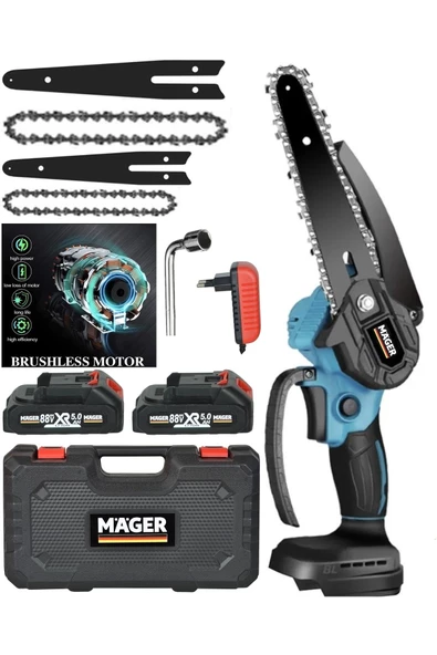 Mager Çift Akülü Kömürsüz Motor Extra Konfor 88watt.10 Ah Zincirli Çift Pala Dal Budama Makinası