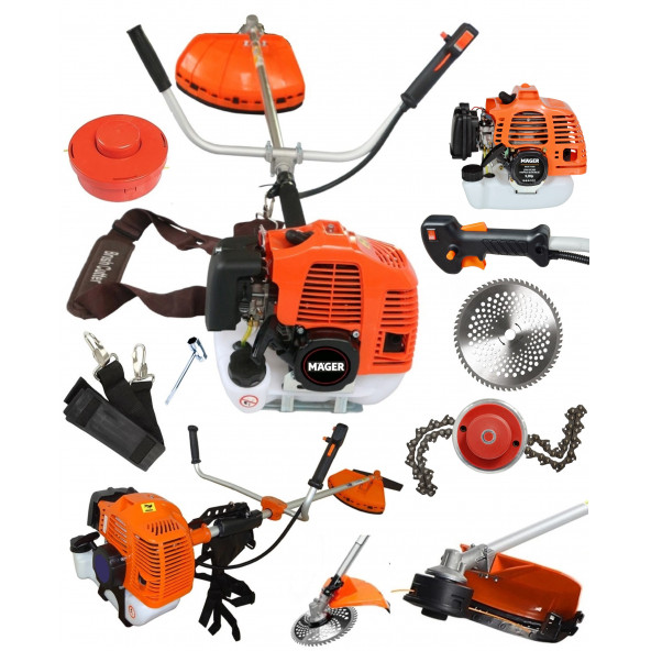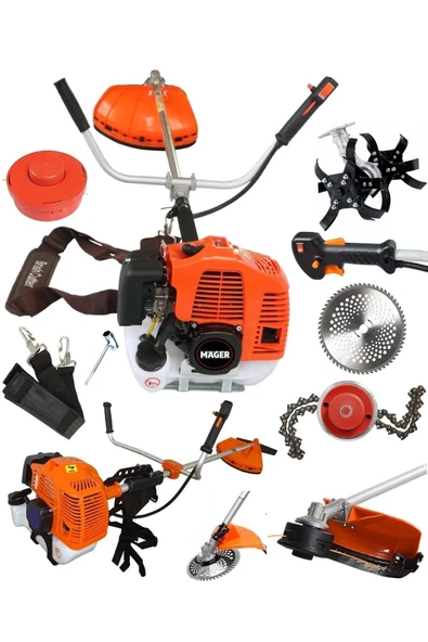 Mager 52cc 9,9 hp Benzinli Tırpan Full 4 Başlıklı Aksesuarlı Çim Biçme Makinası