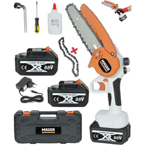 Mager Çift Akülü Kömürsüz Motor Extra Konfor 88 Watt 10 Ah Zincirli Çift Pala Dal Budama Makinası