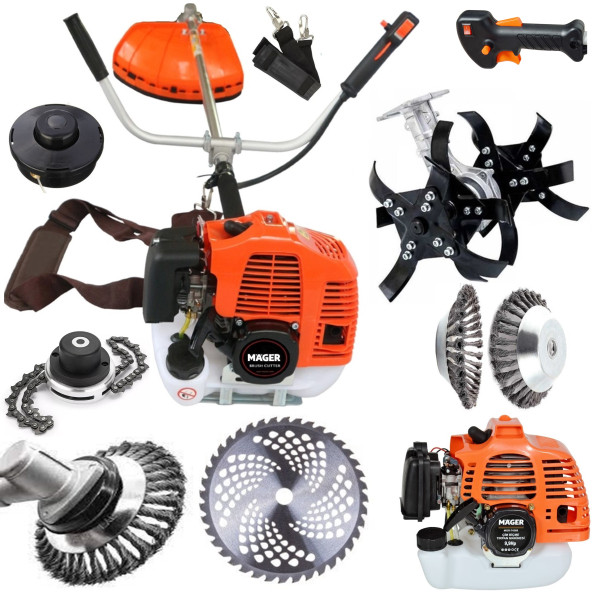 Mager Benzinli Yan Tip 52 cc 9.9 Hp Tırpan Çapalama Aparatı ve Dört Başlık Full+Full Set