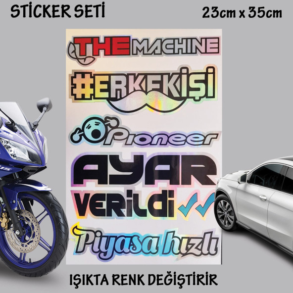 erkek işi mkine otomobil motosiklet cam uyumlu çoklu oto sticker - hologram etkili set çıkartma