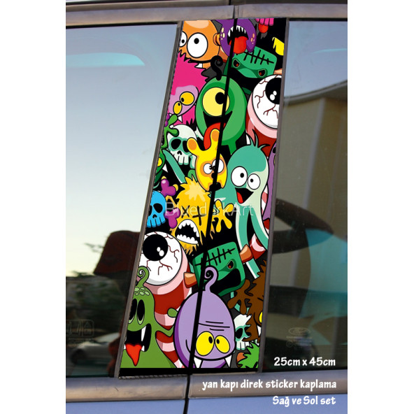 animasyon oto kapı sticker 2li sağ sol kapı direk için folyo kaplama - tuning modifiye görünüm