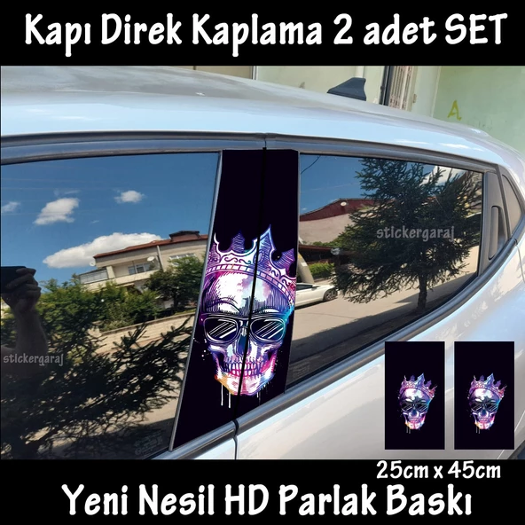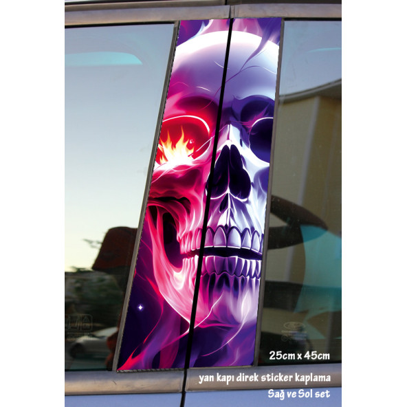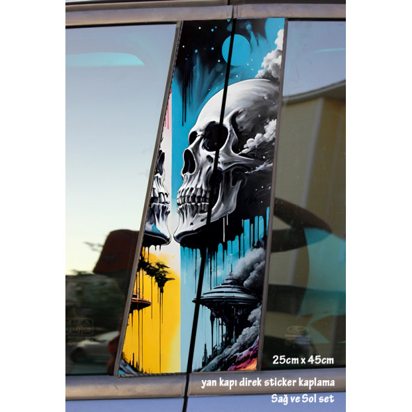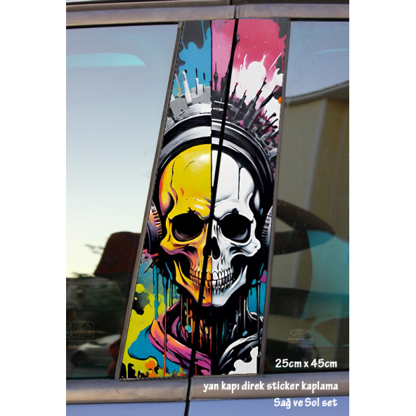 renkli kuru kafa - yan kapı direk kaplama folyosu - 2 adet sol sağ sticker set