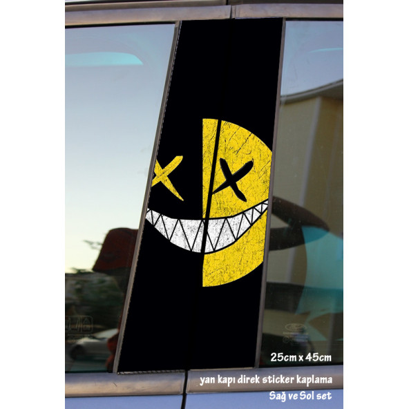 gülen yüz suratlı yan kapı direk kaplama folyosu - 2 adet sol sağ sticker set ölçü : 25cm x 45cm